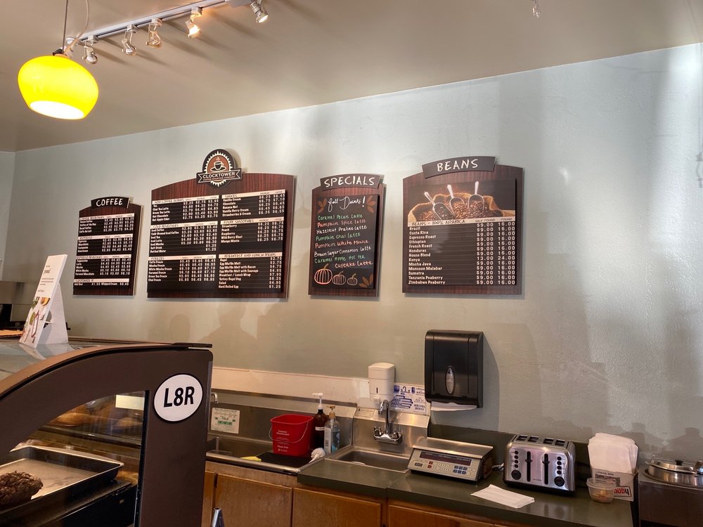 Clocktower Coffee Roasting Company in Mountain View, CA offers a variety of coffee beverages and espresso options. Their 1 Gallon Coffee traveller includes a choice of medium or dark roast, with cream, sugar, and cups included in the price. They also have a selection of teas available. The espresso menu features Americano, Cannpanio, Espresso, and Macchiato. For espresso beverages, try their Cappuccino, Caramel Macchiato, Latte, Mocha, or White Mocha. The cozy ambiance and quiet setting make it an ideal spot for working or catching up with friends. With options for delivery, takeout, and catering, Clocktower Coffee Roasting Company is a great choice for coffee lovers in the area.